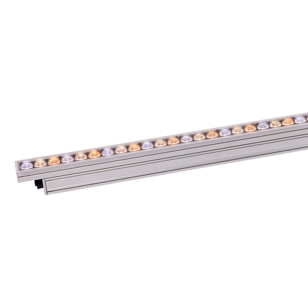 Graze CTCモデルは、高効率な色温度制御(2700K、4000K、6500K)、高い演色評価数(CRI)、12個のLED/フィートを特徴とし、800ルーメン/フィートの強力な出力を実現します。インテリジェントな機能満載のGraze CTCライトには、複数の電源モード、リモートデバイス管理(RDM)、低消費電力で調整しやすい総ルーメン出力、DMX制御機能、そして統合型ユニバーサル電源による簡単な設置など、多彩な機能が搭載されています。