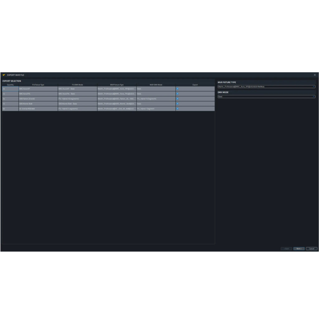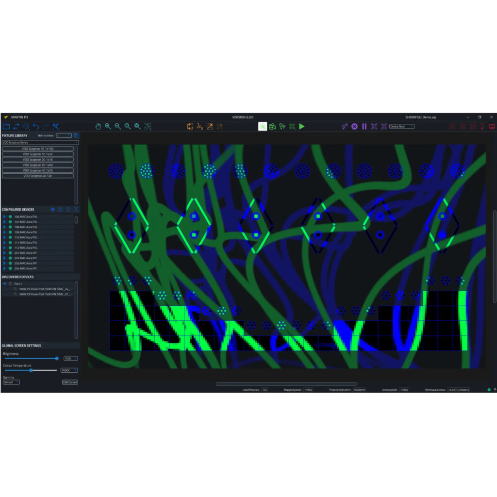 Martin P3-175システムコントローラーはP3ビジュアライザープロトコルも出力し、互換性のあるサードパーティ製(3D)ビジュアライザーによるリアルタイム(3D)ビジュアライゼーションを可能にします。これにより、プログラミング前のワークフローが大幅に改善されます。