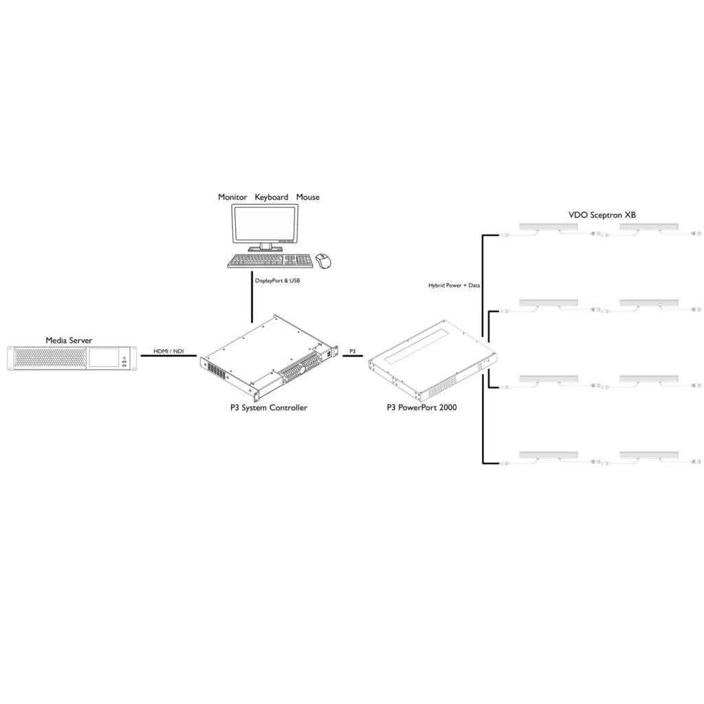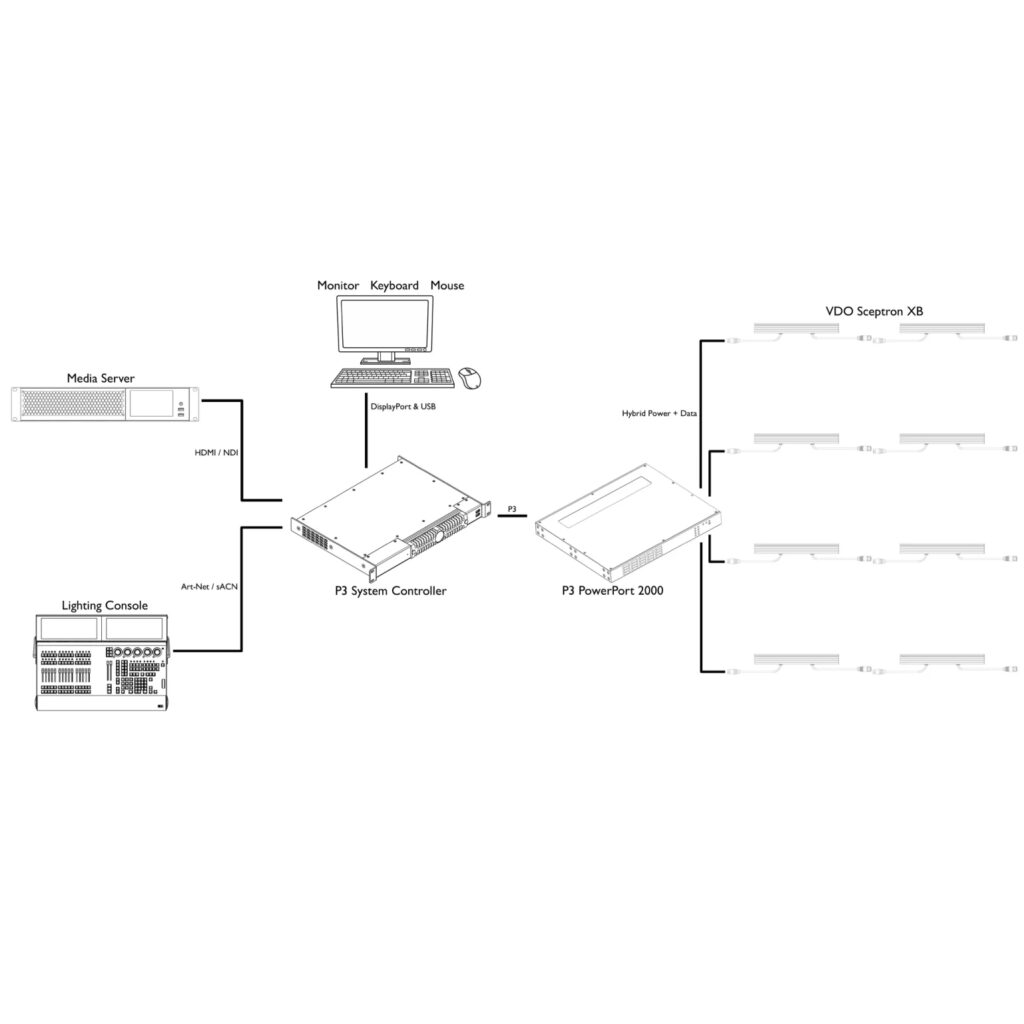 すべての P3 PowerPort 対応 Creative LED 照明器具は、同じデイジーチェーン上でも P3 PowerPort 2000 とペアリングできます。