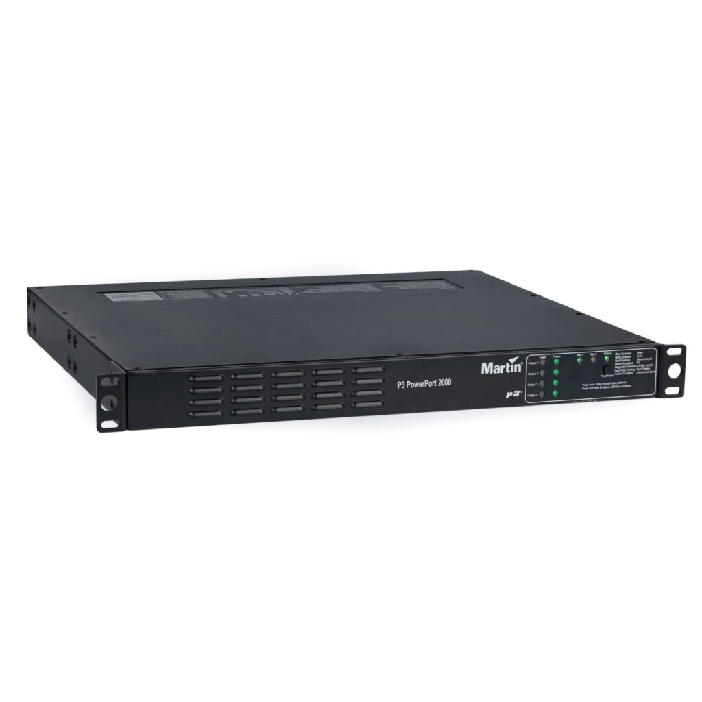 Martin P3 PowerPort 2000は、MartinのCreative LED照明器具にシームレスな電力とデータを供給し、屋内設置およびレンタル用途に適しています。安定した電力供給と高速・大容量のデータ配信を融合し、照明器具の設置を簡素化します。筐体はラック、トラス、壁面への設置に対応し、最大限の設置柔軟性を実現します。