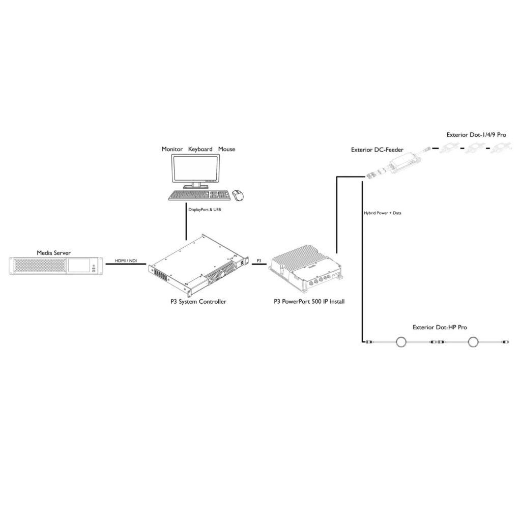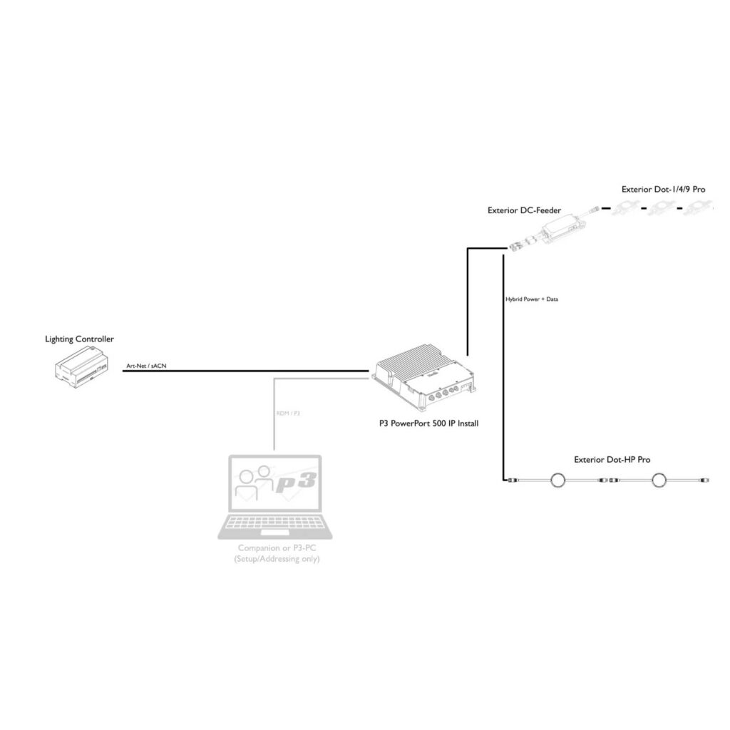 すべての P3 PowerPort 対応 Creative LED 照明器具は、同じデイジーチェーン上でも P3 PowerPort 500 IP Install とペアリングできます。